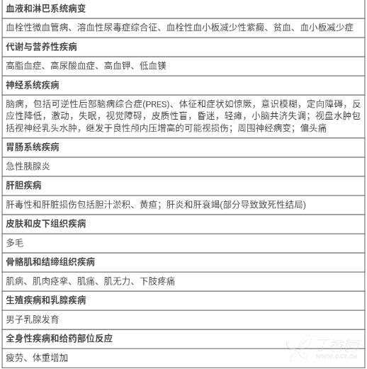 接受钙调磷酸酶抑制剂(CNIs)包括环孢素和含有环孢素的治疗方案治疗的患者,发生急性或慢性肾脏毒性的风险增加。临床试验和上市后使用本品均有此类报告。急性肾毒性病例报告为离子动态平衡障碍,如高钾血症、低镁血症、高尿酸血症,多数病例发生在治疗第一个月。病例报告的慢性形态学改变包括小动脉透明样变性,小管萎缩和间质纤维化。